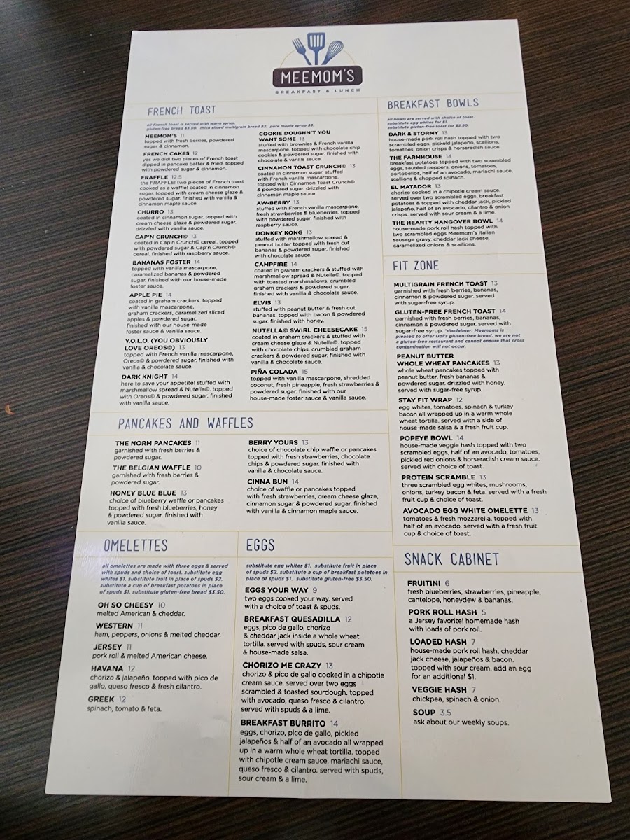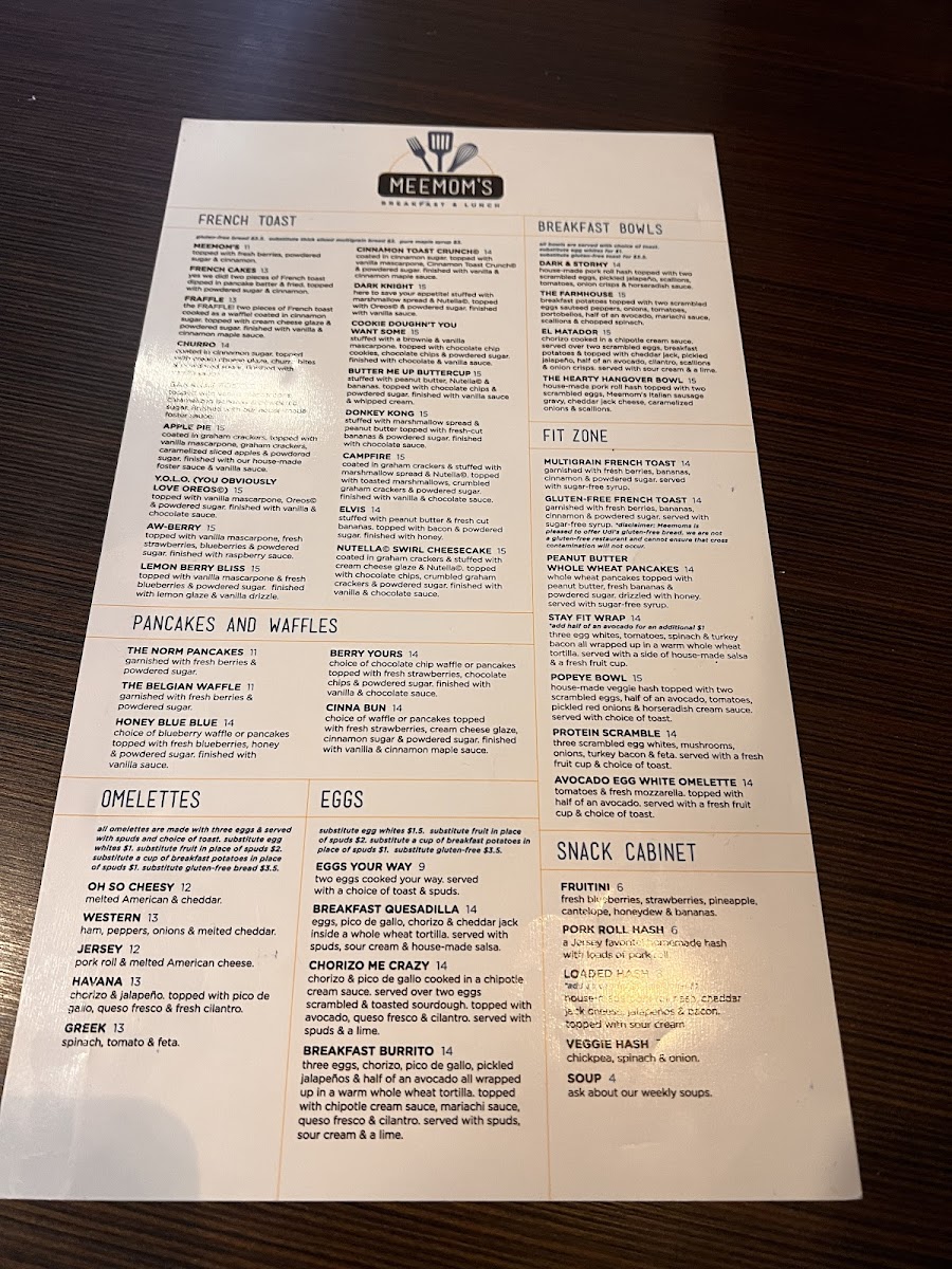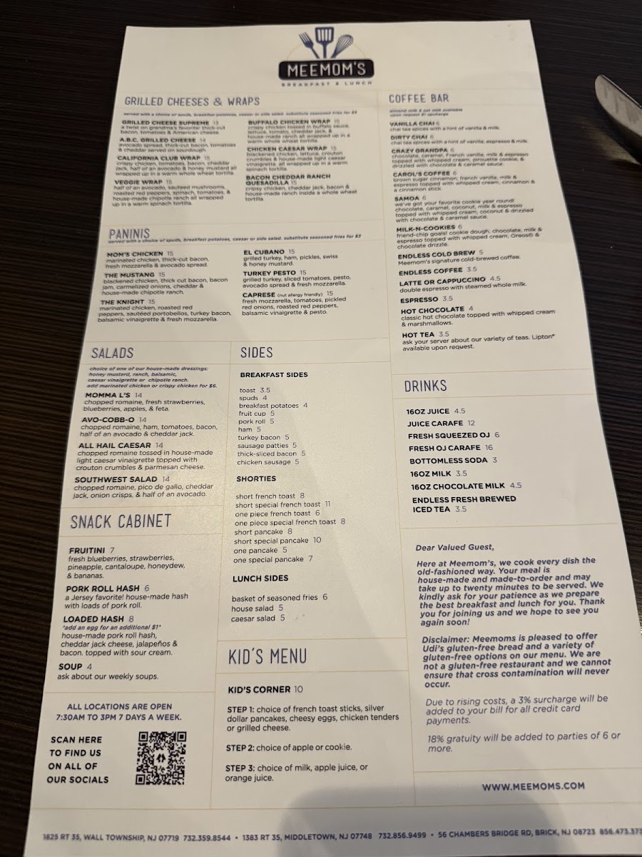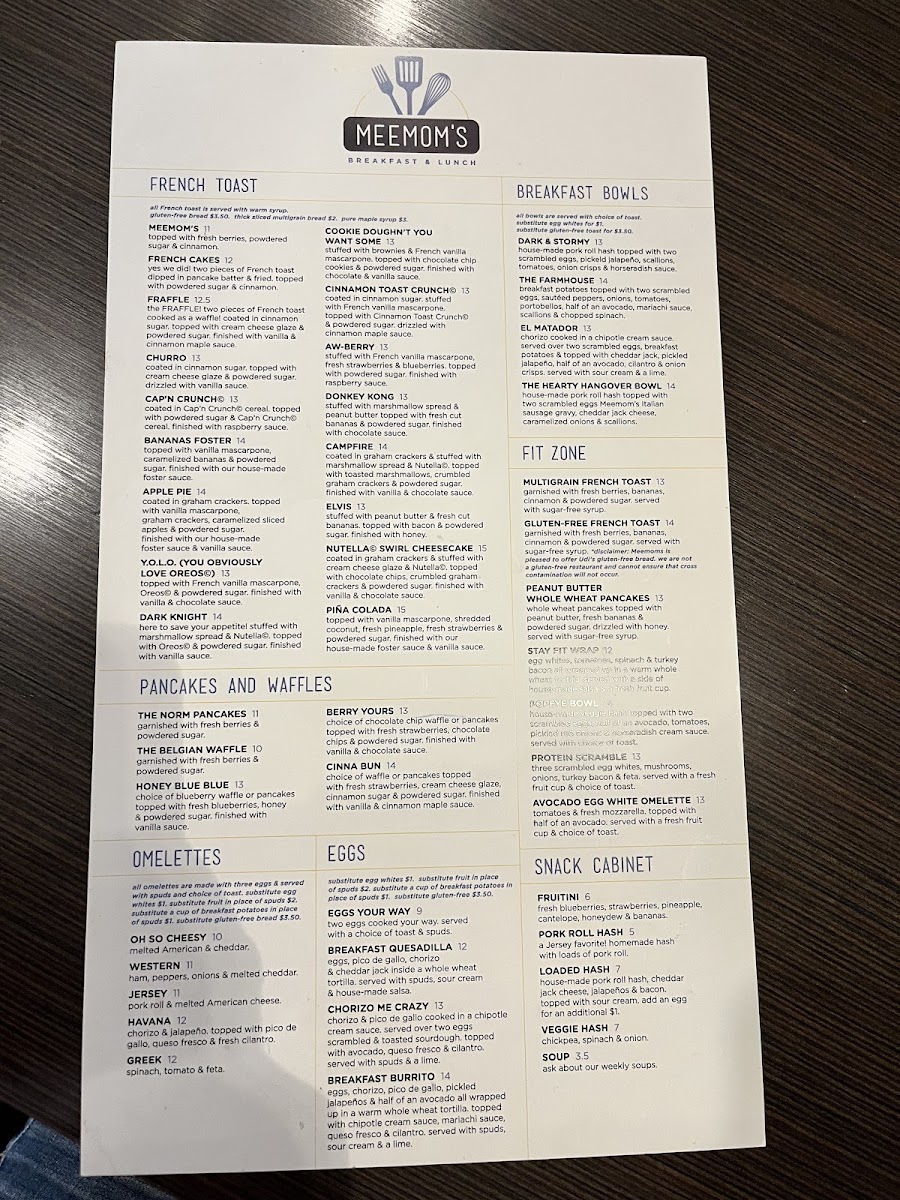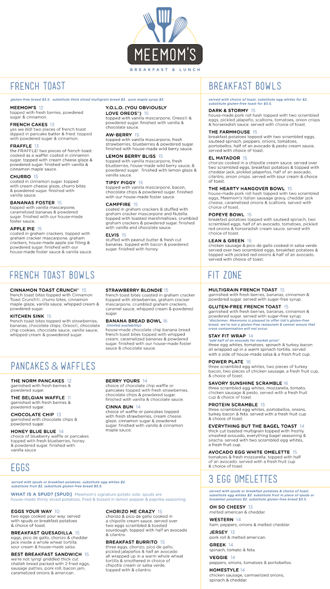 house-made pork roll hash topped with two scrambled eggs, Meemom's Italian sausage gravy, cheddar jack cheese, caramelized onions & scallions. served with choice of toast.